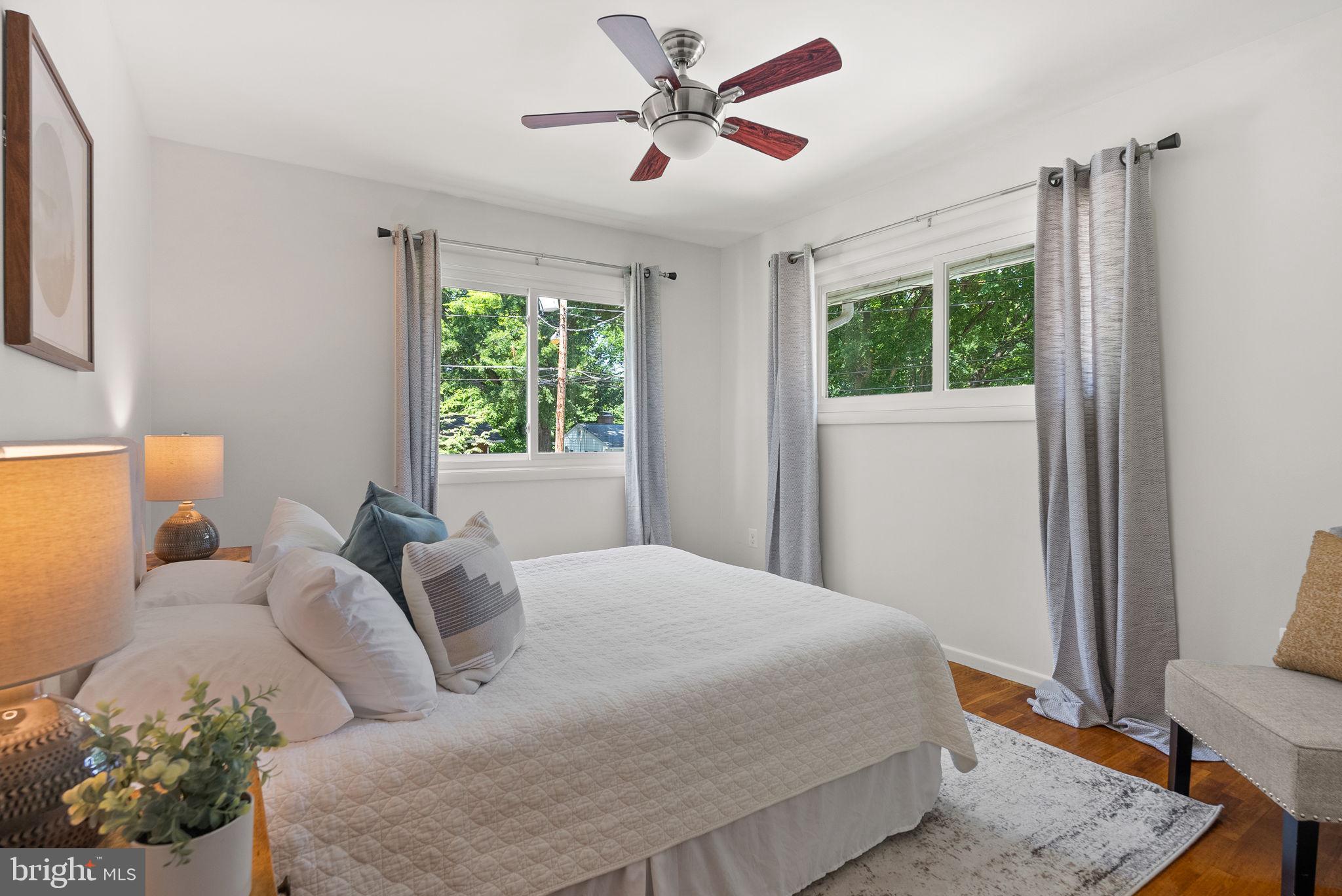 Welcome to the charming Mosby Woods Community! This delightful home boasts 4 bedrooms, 2.5 baths, and over 2000 sq. ft. of living space, promising comfort and convenience at every turn. Upon entering, you're greeted by an inviting fully open main level, bathed in natural light streaming through large floor-to-ceiling windows. Freshly painted walls complement the natural hardwood floors, creating an atmosphere of warmth and elegance. Prepare meals with ease in the fully renovated kitchen, adorned with stone countertops, updated cabinets, and modern appliances. Descend to the lower level and unwind by the brick fireplace in the cozy family room, complete with a half bath, dedicated laundry space, and an additional office or sleeping area, providing flexible options to suit your lifestyle. Ascending to the upper level, discover four well-appointed bedrooms with oversized windows, including a primary suite with a walk-in close. With a keen eye for design and a touch of creativity, you have the opportunity to craft a serene sanctuary where every detail is tailored to your vision of the perfect bathroom. Outside, revel in the tranquility of your covered screened-in porch, surrounded by mature trees, while the newly fenced-in backyard beckons for family barbecues and serene gatherings under the open sky. This home has been meticulously maintained with several upgrades, including fresh paint throughout, professional deep cleaning and carpet cleaning (2024), new basement LVP floors (2024), updated powder room (2021), and a full exterior and roof power wash and inspection (2024), major kitchen renovation (2016), recessed lighting (2016) screened in porch (2017), fenced in yard (2017) custom storage shed (2017), electric car charging hookup (2021), full encapsulation and waterproofing of storage space (2020) and regular HVAC and water maintenance As a resident of Mosby Woods, you'll enjoy a strong sense of community, with various activities and amenities available. Take advantage of the nearby community pool (additional yearly membership fee) and partake in the neighborhood's vibrant events, including parades, pool parties, and holiday festivities. Located within the Fairfax City region, you'll have access to a plethora of entertainment options, from holiday parades to farmers' markets. With its convenient location near restaurants, playgrounds, and parks, this home offers the perfect blend of suburban serenity and urban convenience. Come experience the best of Mosby Woods living--welcome home!