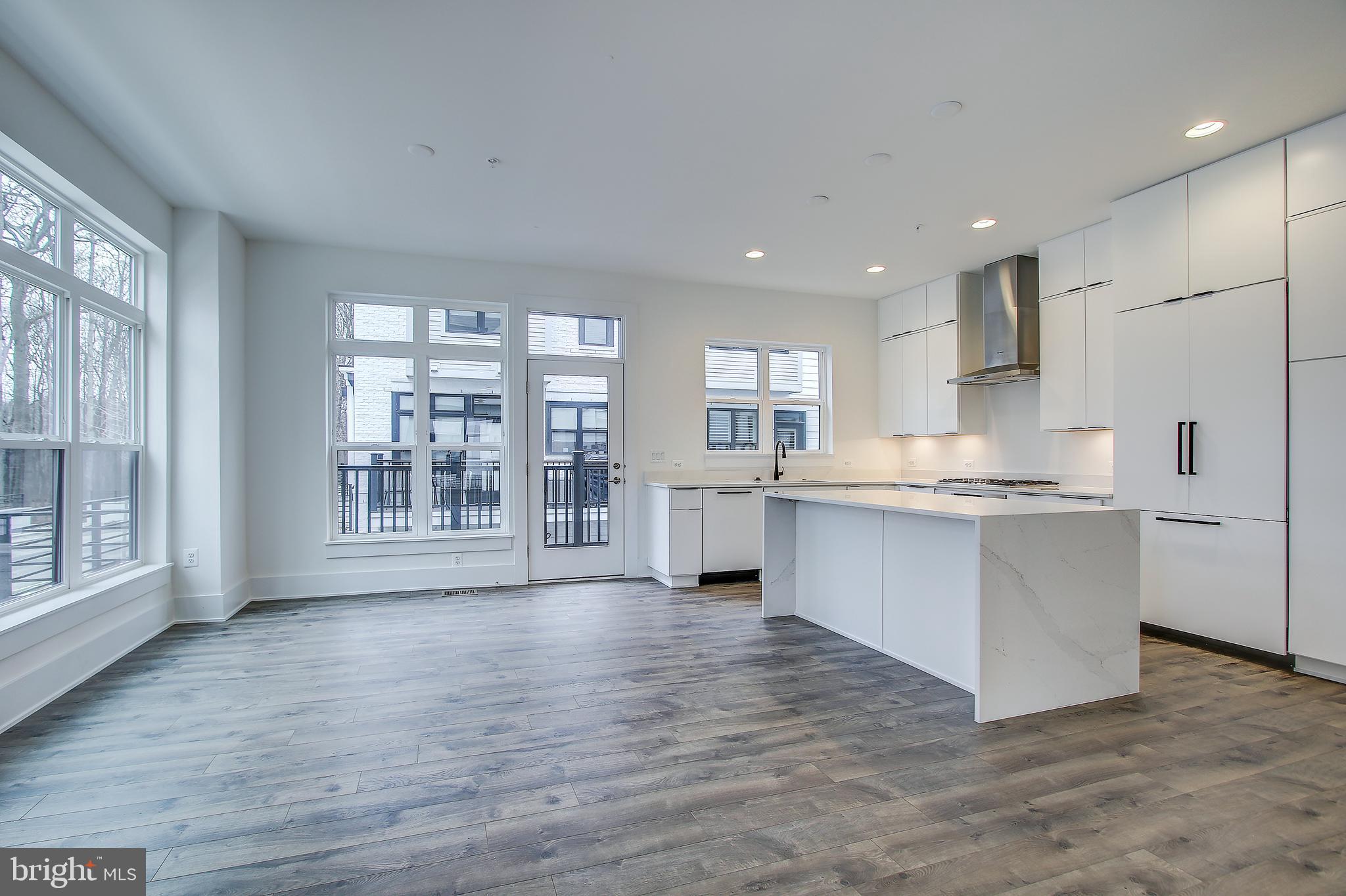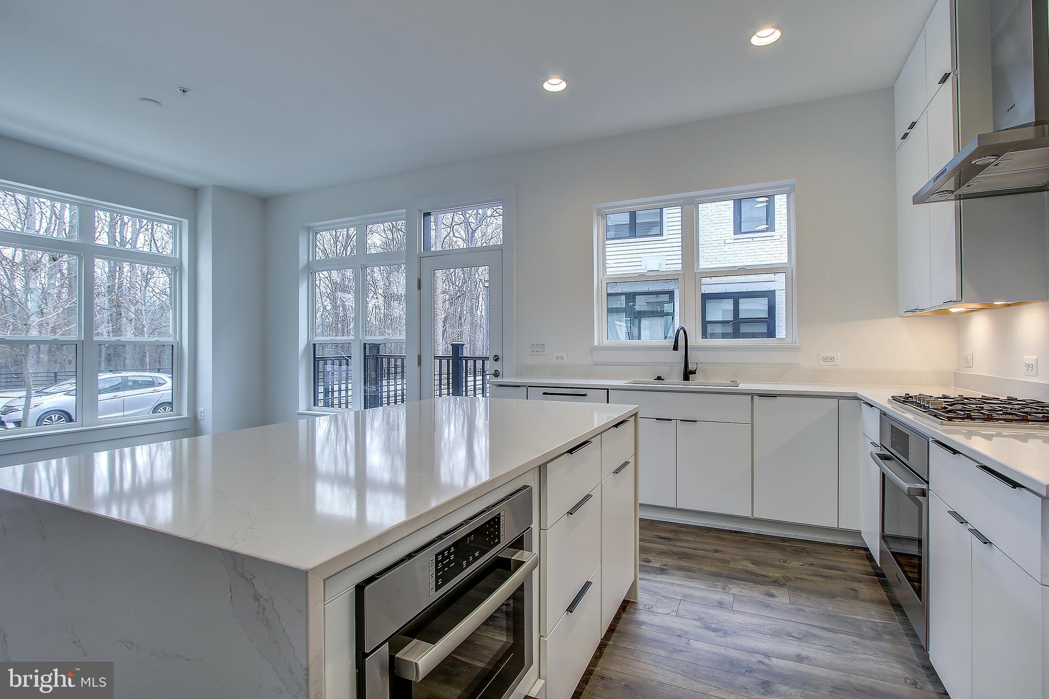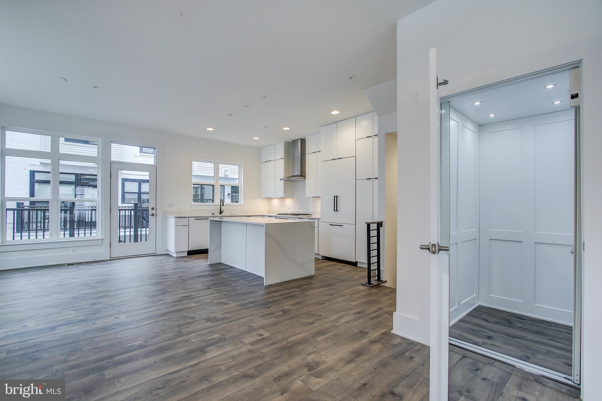4 -LEVEL END UNIT ELEVATOR TOWNHOME. Located just steps away from the vibrant new shopping and dining at Cabin John Village, the serene wooded trails and recreational activities in Cabin John Park and just minutes to Montgomery Mall. Brilliant white brick exterior architecture and spacious airy interiors. End-to-end voluminous windows and high ceilings provide an abundance of sunlight in this open-flow layout. Gourmet kitchen with center island and soft-close cabinetry built up to 9 1/2 foot ceiling height. Primary bedroom boasts 2 walk-in closets and ensuite bath. Fourth level-- which includes family room, bedroom/office and full bath--opens to spectacular rooftop terrace with tiled floor and stunning sweeping views of the wooded parkland and beyond. A recreation room, and 2-car garage are found on the lower level.