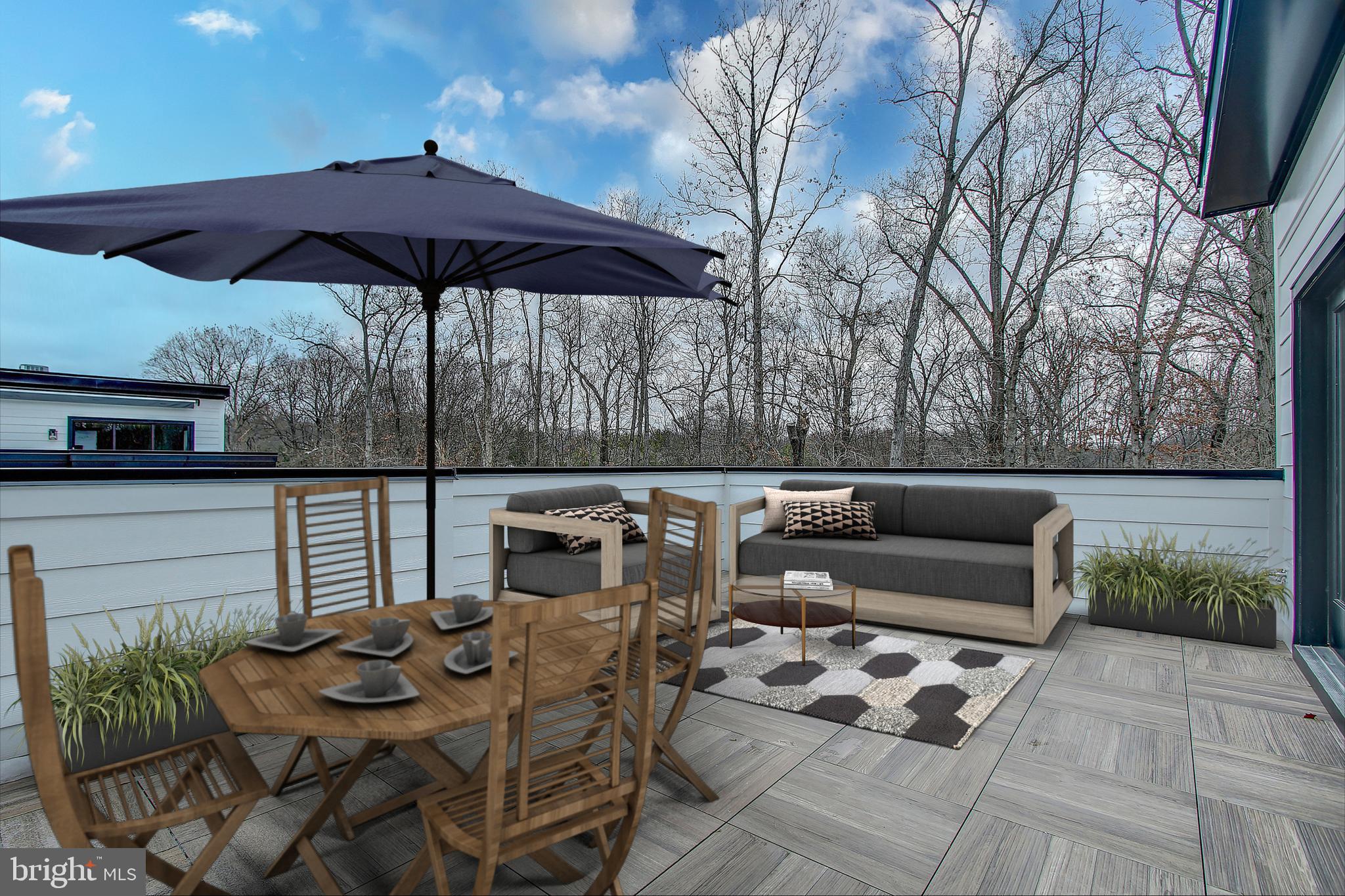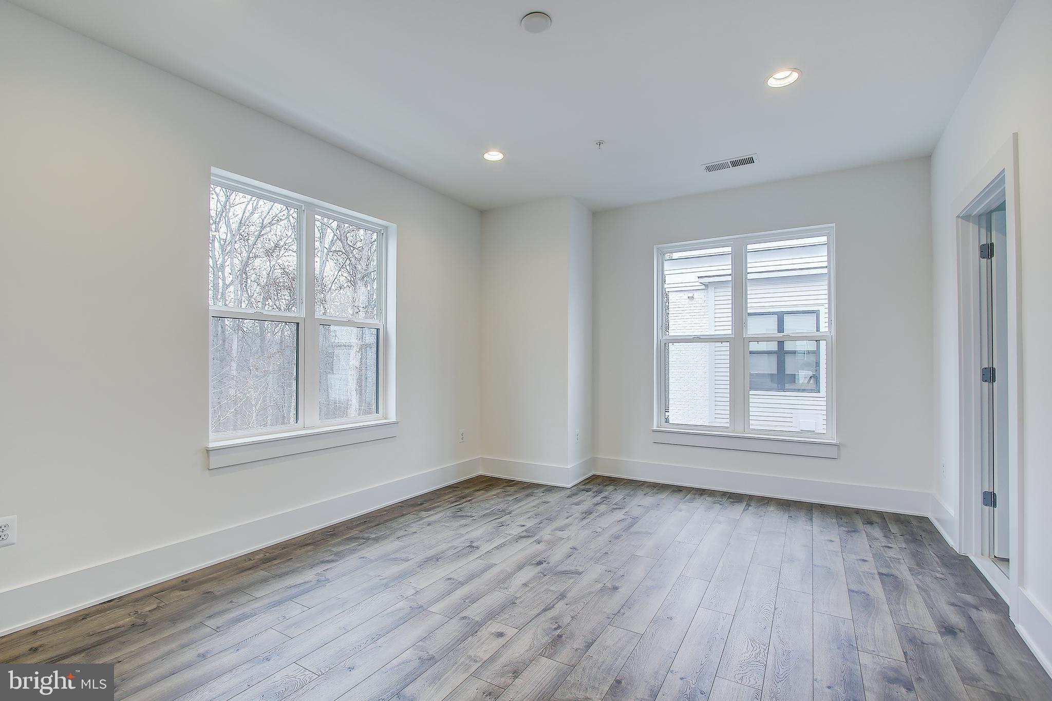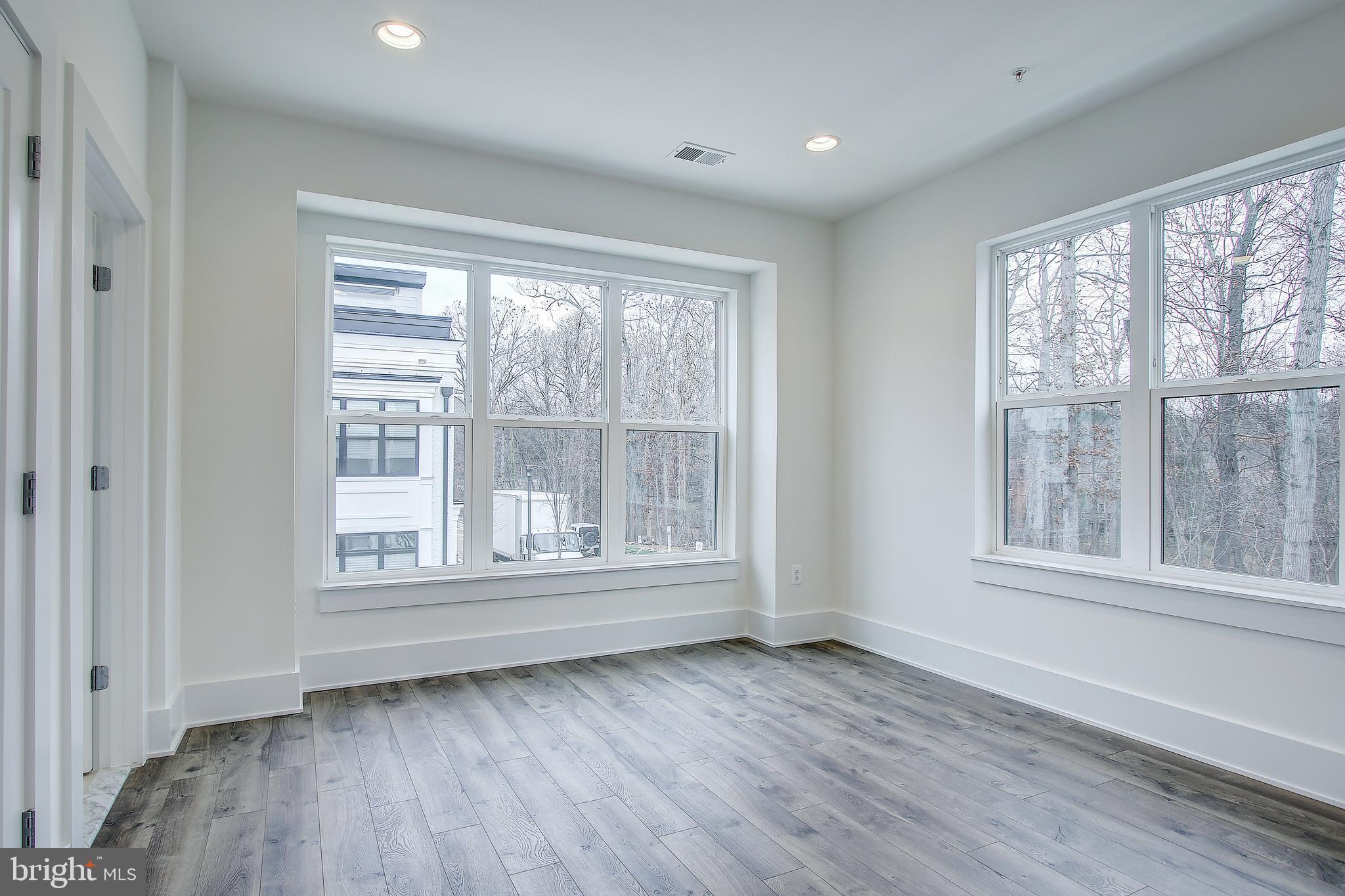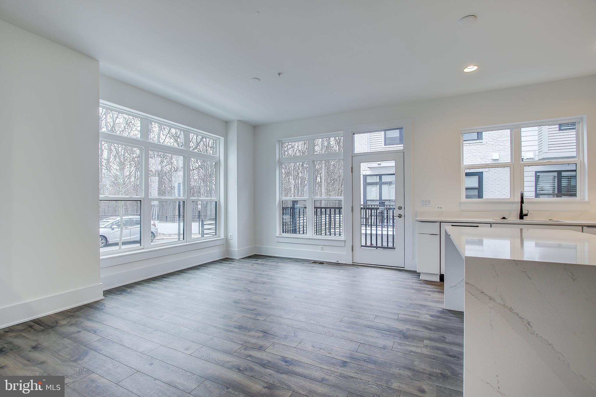 4 -LEVEL END UNIT ELEVATOR TOWNHOME. Located just steps away from the vibrant new shopping and dining at Cabin John Village, the serene wooded trails and recreational activities in Cabin John Park and just minutes to Montgomery Mall. Brilliant white brick exterior architecture and spacious airy interiors. End-to-end voluminous windows and high ceilings provide an abundance of sunlight in this open-flow layout. Gourmet kitchen with center island and soft-close cabinetry built up to 9 1/2 foot ceiling height. Primary bedroom boasts 2 walk-in closets and ensuite bath. Fourth level-- which includes family room, bedroom/office and full bath--opens to spectacular rooftop terrace with tiled floor and stunning sweeping views of the wooded parkland and beyond. A recreation room, and 2-car garage are found on the lower level.