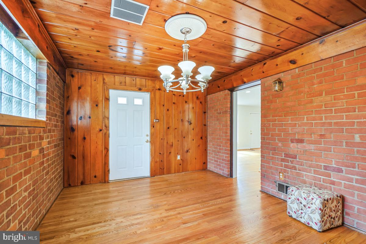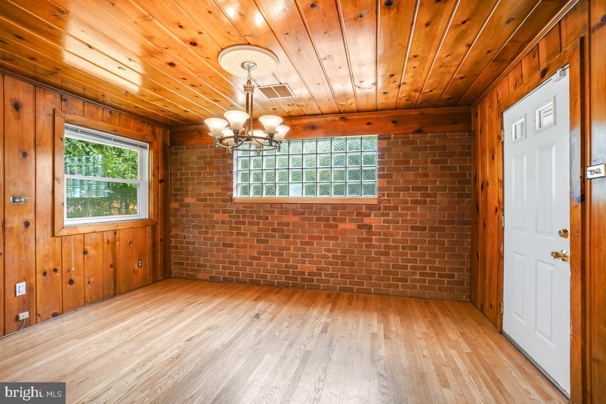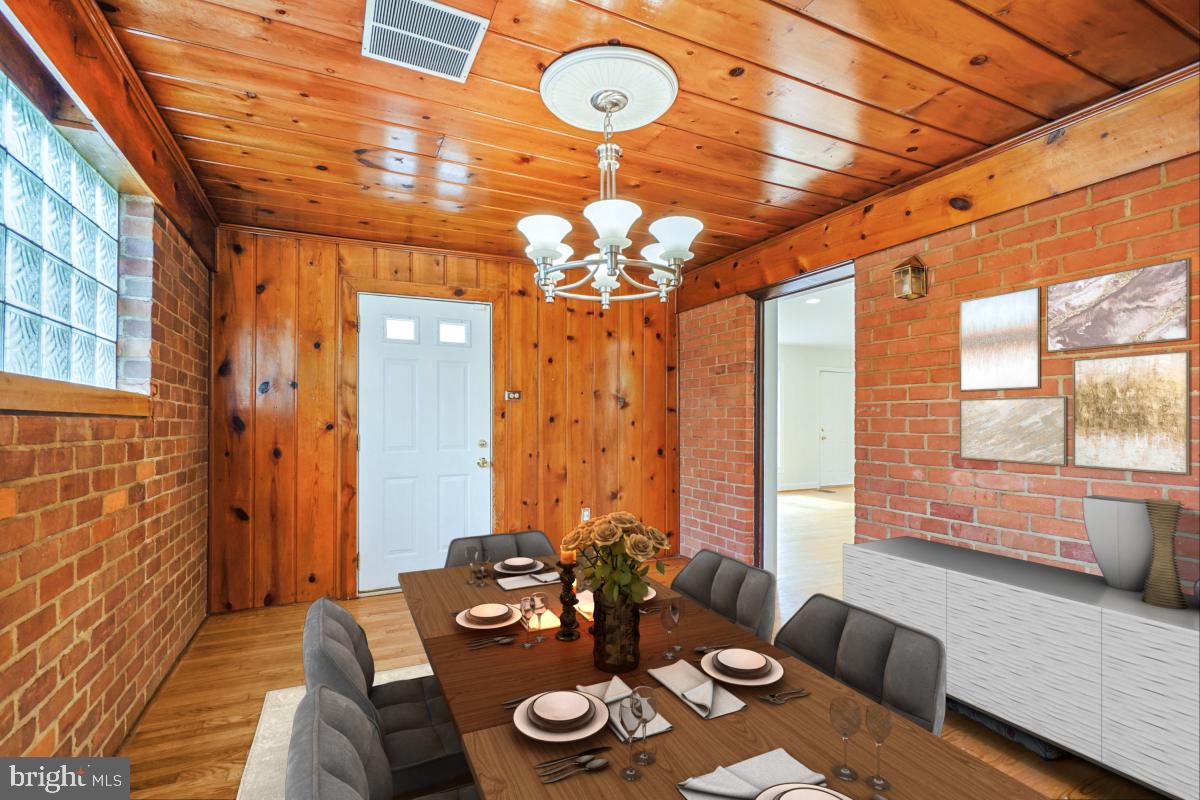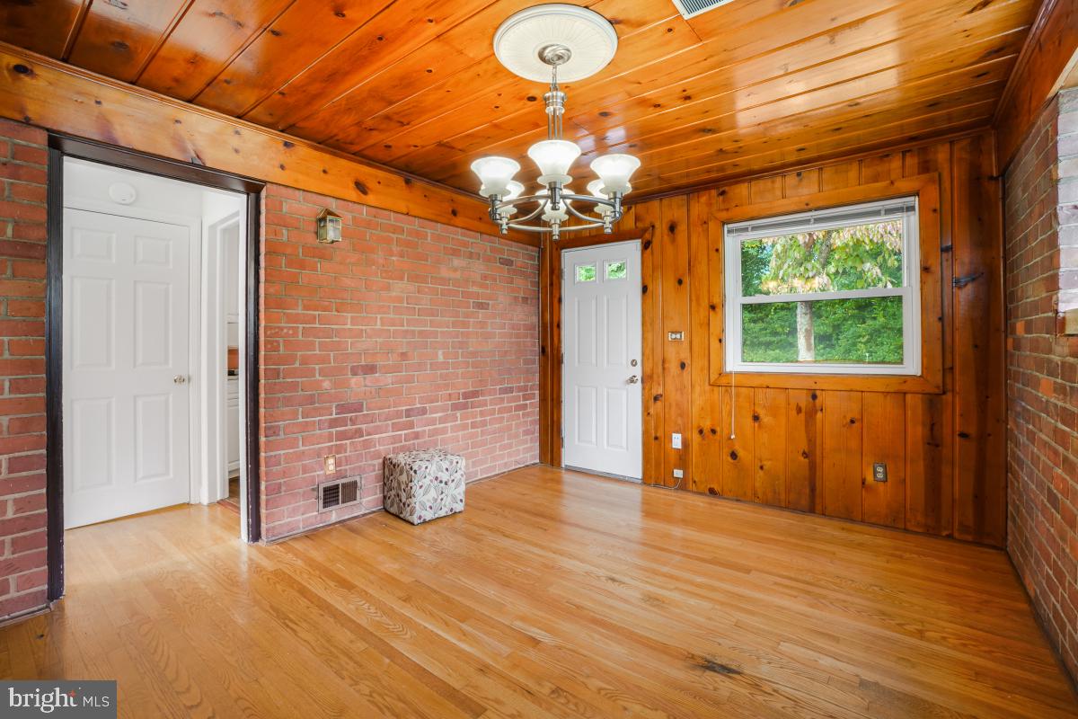 The updated kitchen is a chef's delight, featuring granite countertops, a gas stove, and modern appliances, including a dishwasher and refrigerator. Adjacent to the kitchen, the breakfast/dining room boasts beautiful exposed brick and hardwood paneling, adding warmth and character to your dining experience.