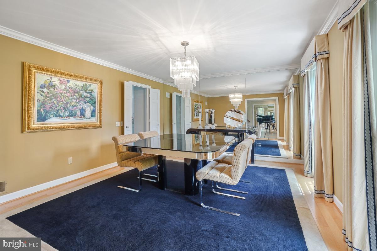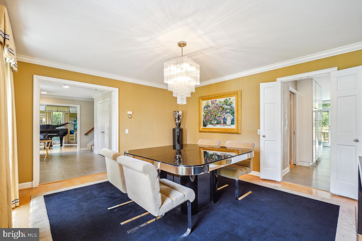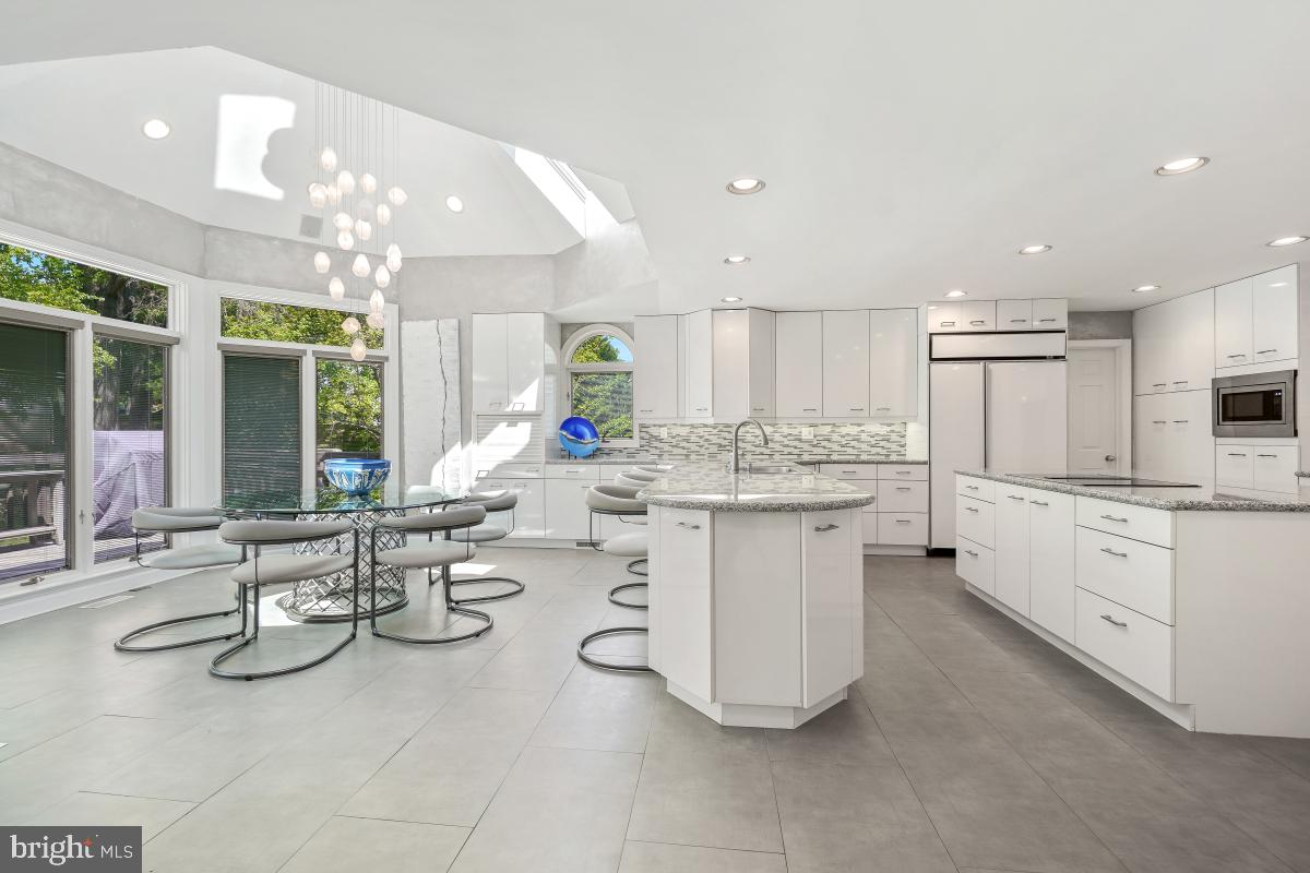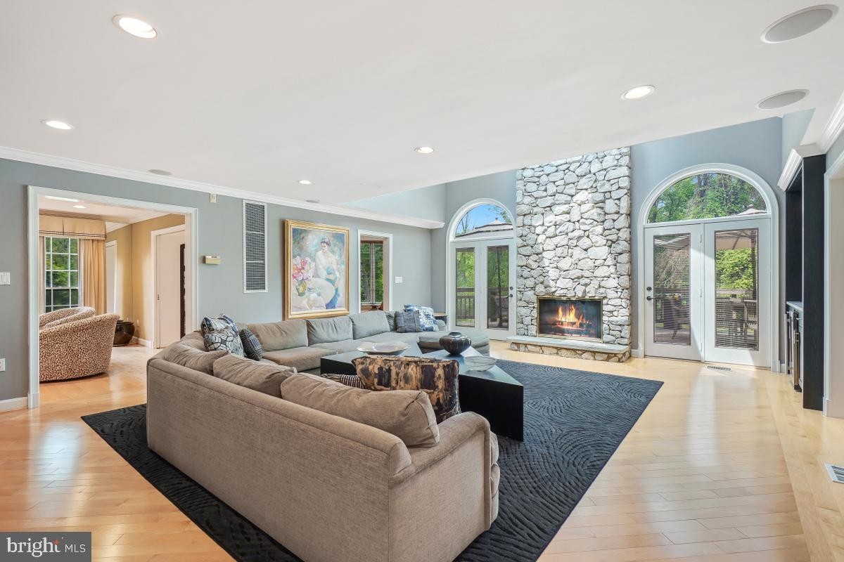 Step into an immense family room featuring a soaring cathedral ceiling, a floor-to-ceiling stone fireplace, and an elegant bar area, flanked by double French doors that open to a generous deck--perfect for indoor-outdoor gatherings.The gourmet kitchen is a chef's dream, boasting top quality appliances including Wood-Mode cabinets, Sub-Zero refrigerator and double wall ovens. An oversized island, additional peninsula, and a breakfast bar offer incredible counter space and seating options. The adjacent breakfast area, with floor-to-ceiling windows, three skylights and vaulted ceiling, invites in natural light and views of the lush backyard.A formal living room with floor-to-ceiling windows comfortably accommodates a baby grand piano and still leaves generous space for seating. A formal dining room and private first-floor office are on this level. Designed with entertaining in mind, both for intimate groups and large scale parties, this home features a layout where every room flows effortlessly into the next.