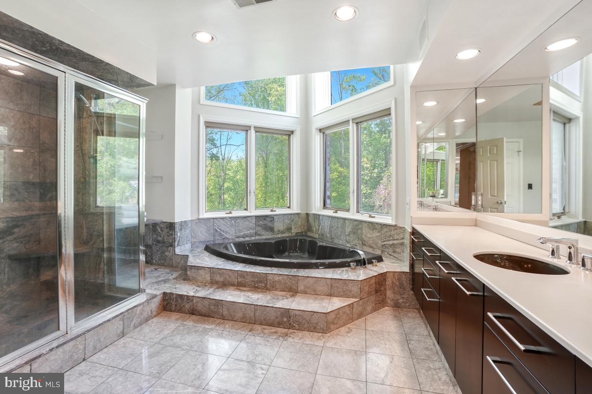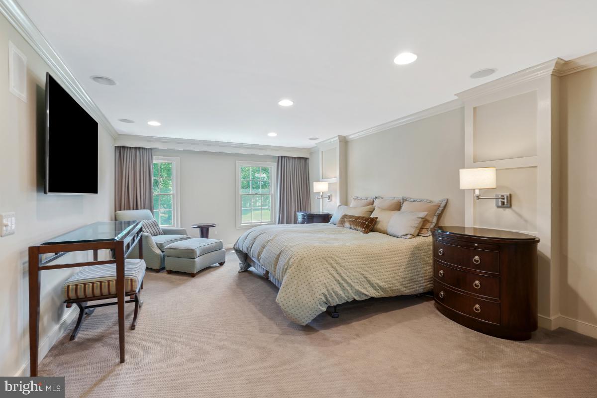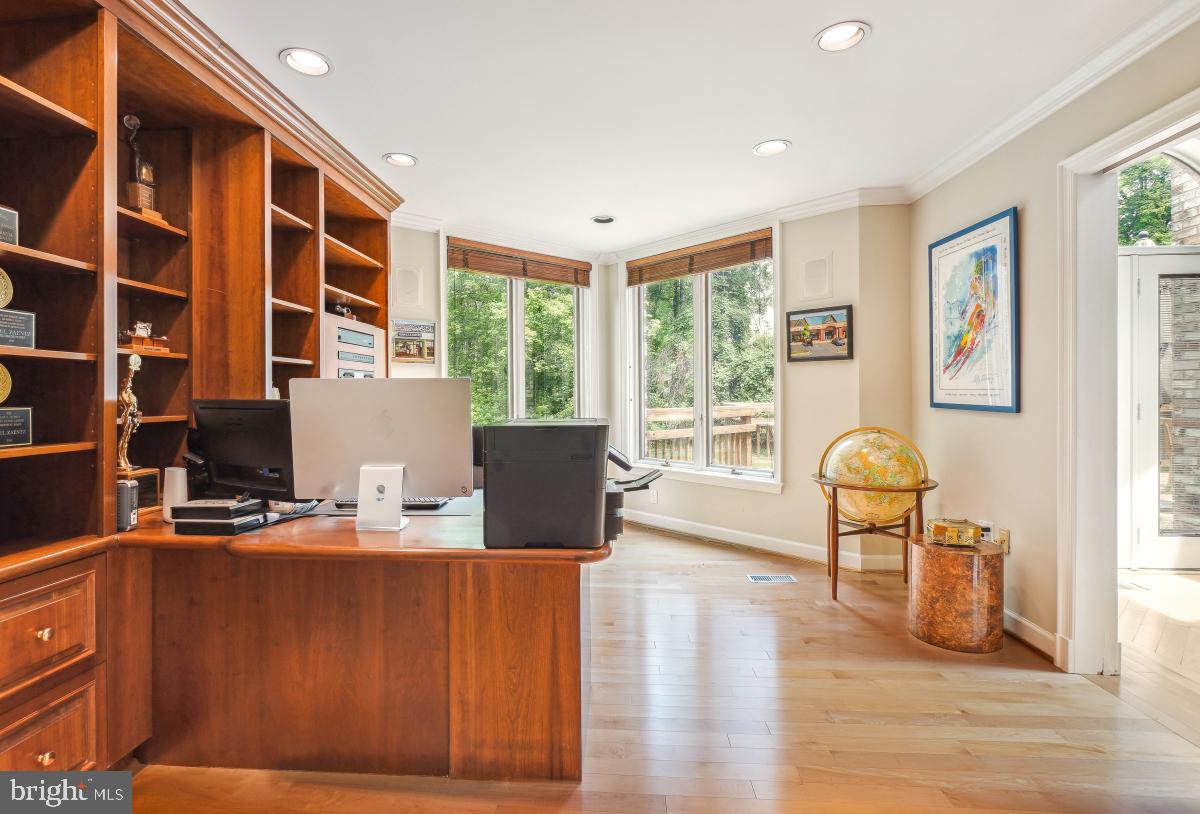 Step into an immense family room featuring a soaring cathedral ceiling, a floor-to-ceiling stone fireplace, and an elegant bar area, flanked by double French doors that open to a generous deck--perfect for indoor-outdoor gatherings.The gourmet kitchen is a chef's dream, boasting top quality appliances including Wood-Mode cabinets, Sub-Zero refrigerator and double wall ovens. An oversized island, additional peninsula, and a breakfast bar offer incredible counter space and seating options. The adjacent breakfast area, with floor-to-ceiling windows, three skylights and vaulted ceiling, invites in natural light and views of the lush backyard.A formal living room with floor-to-ceiling windows comfortably accommodates a baby grand piano and still leaves generous space for seating. A formal dining room and private first-floor office are on this level. Designed with entertaining in mind, both for intimate groups and large scale parties, this home features a layout where every room flows effortlessly into the next.