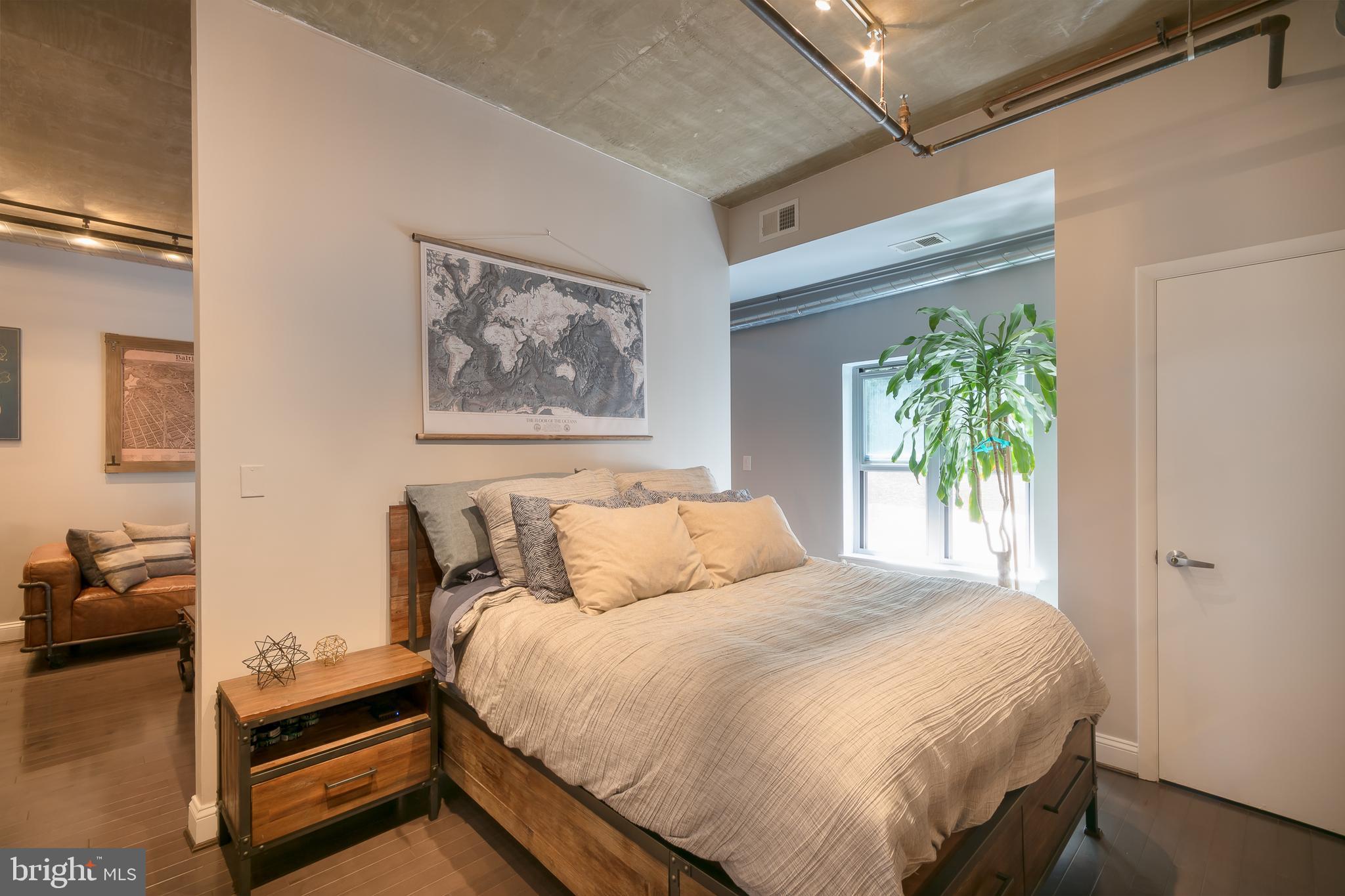 Step into this unique loft-style condo, offering the only private outdoor space in the building. Designed with an open, functional floor plan, this home features an upgraded kitchen with a spacious cabinet and sleek hardwood floors, a large walk-in closet, and a modern bathroom. The in-unit washer/dryer adds convenience, while the airy layout and exposed industrial ceilings create an inviting, contemporary feel.