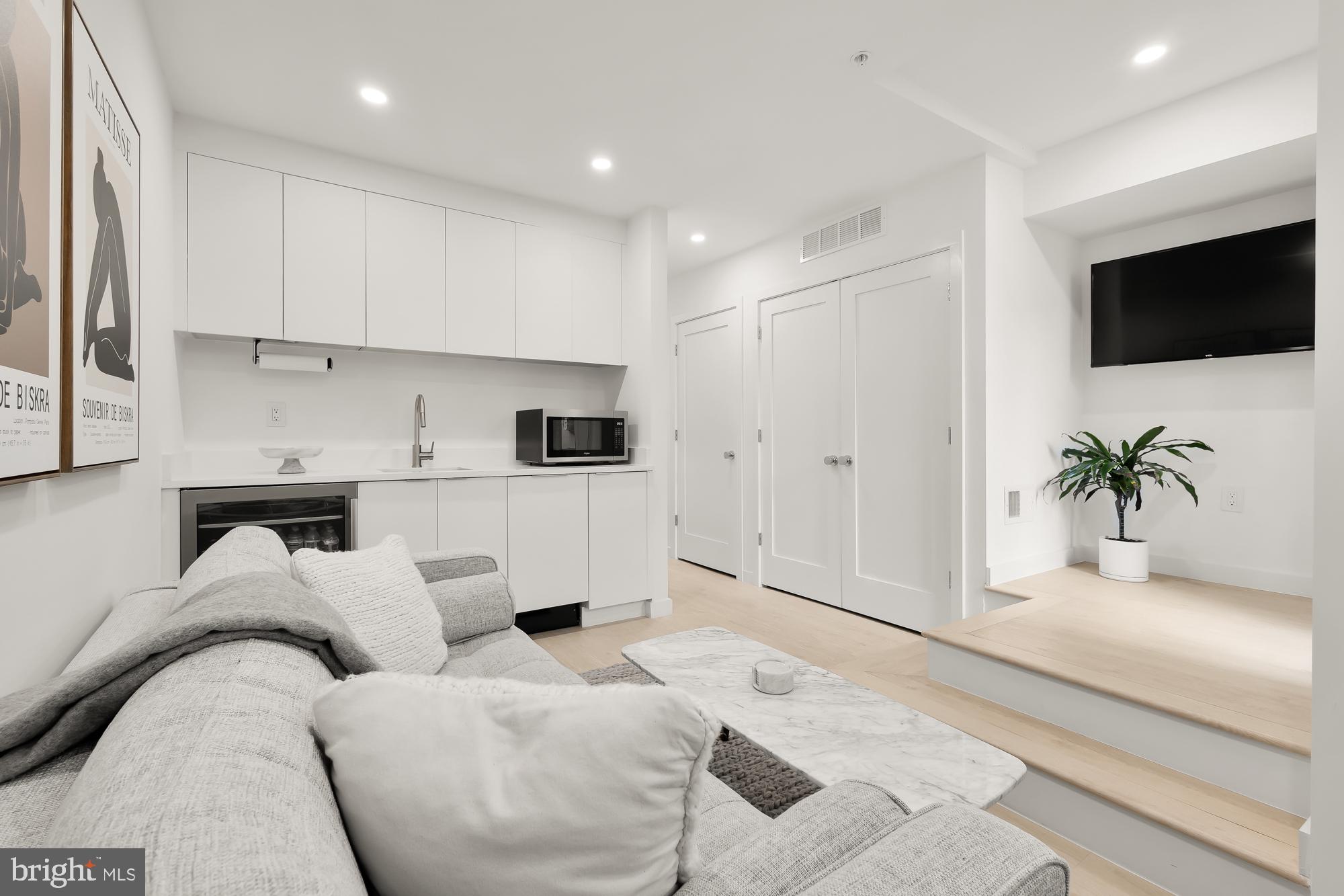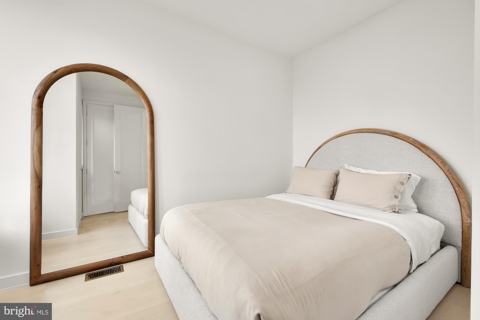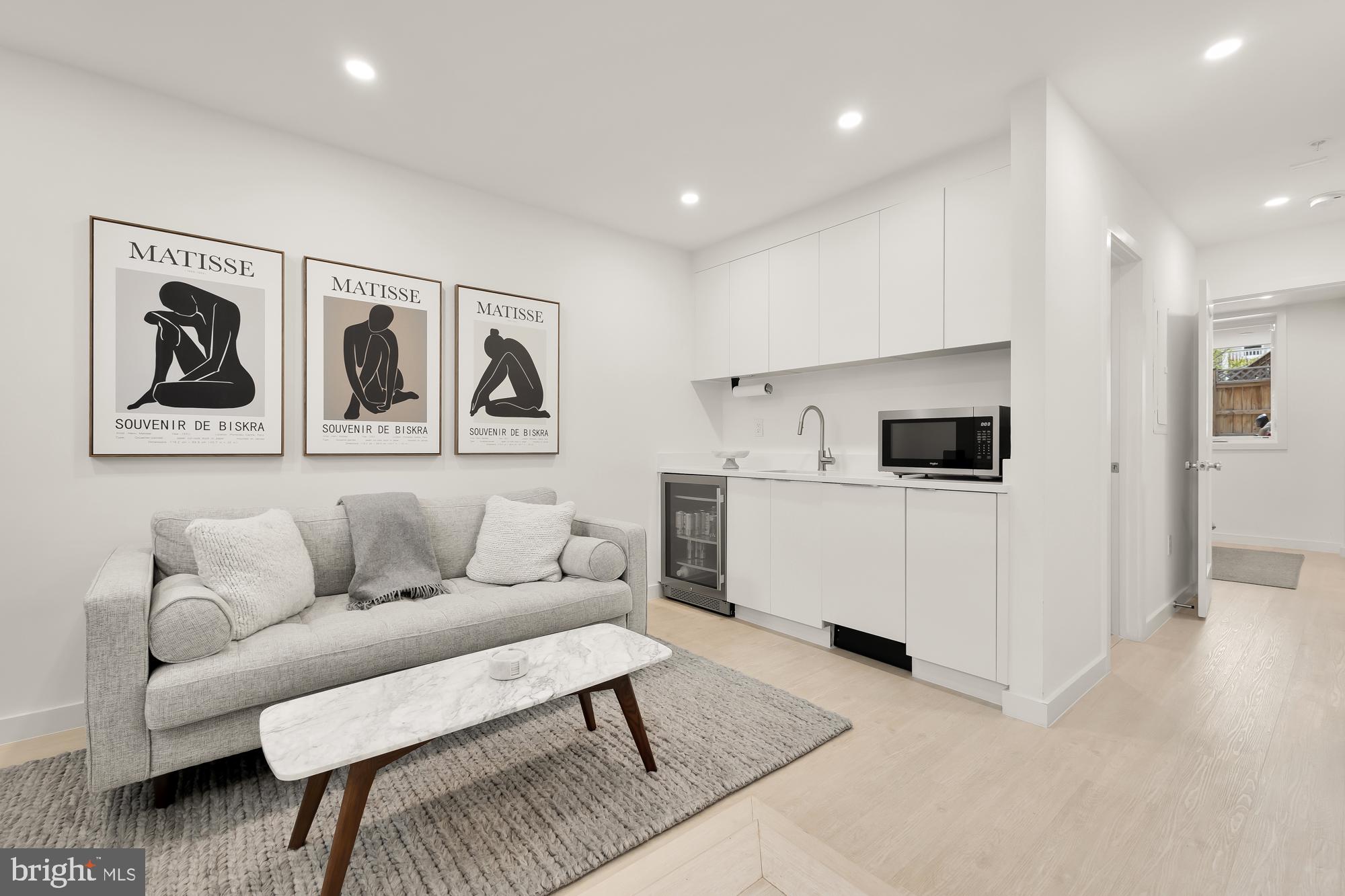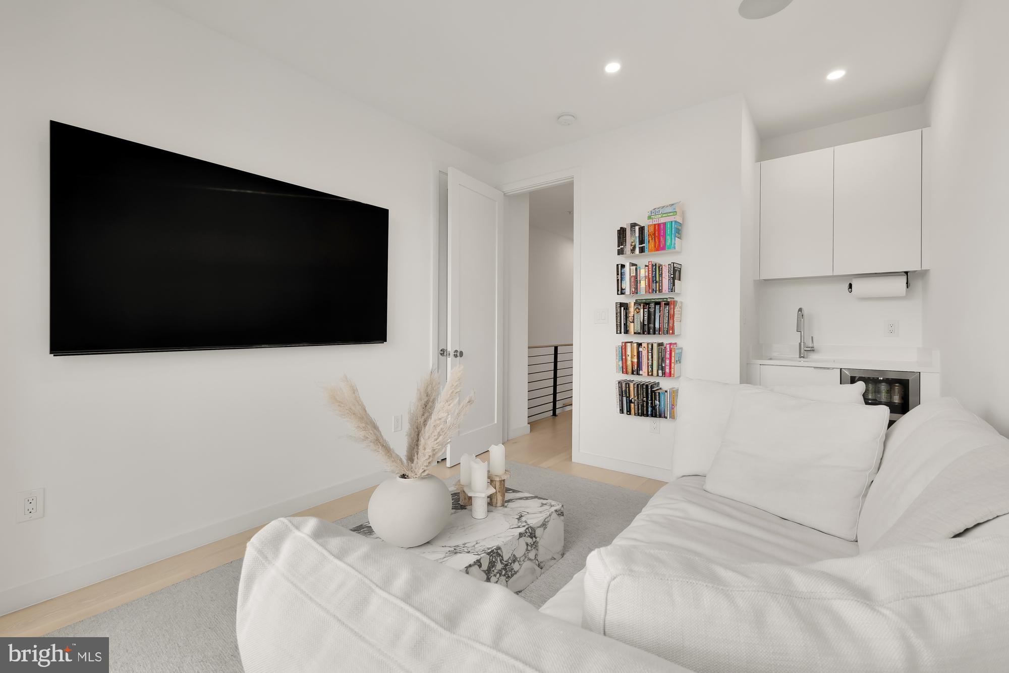 The top level hosts a guest bedroom, a full bathroom, and a den (or bedroom) with a sophisticated integrated wet bar and wine fridge, perfect for hosting and entertaining. Step out from the den onto the private roof deck to indulge in breathtaking panoramic city views and a sweeping vista of the monument.