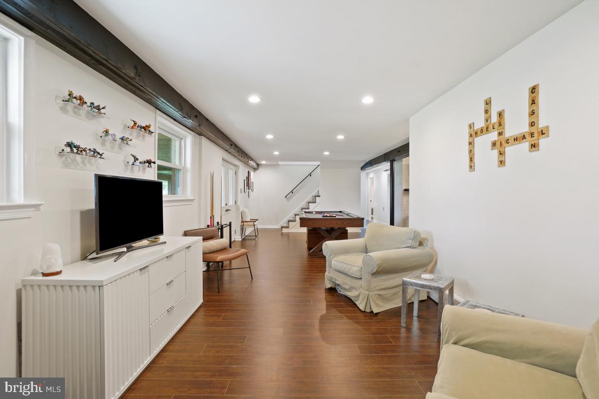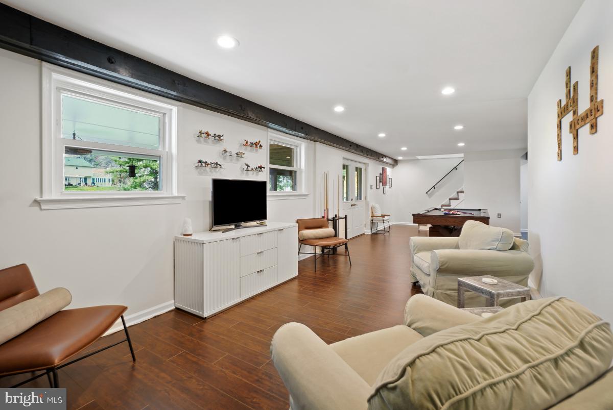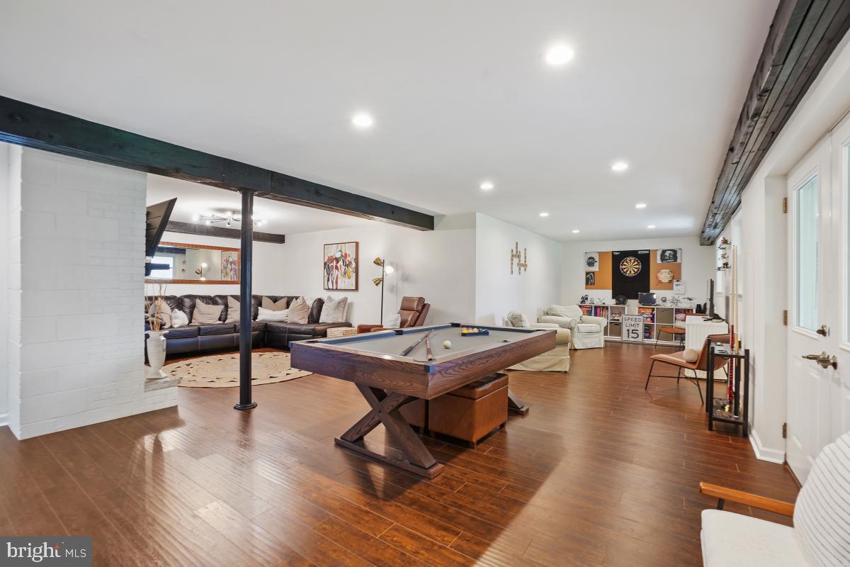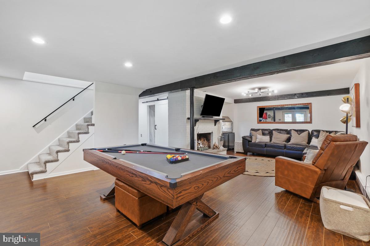 The fully finished walkout lower level features two bedrooms two full bathrooms and a large recreation with a pool table, perfect for hanging out with friends and family.