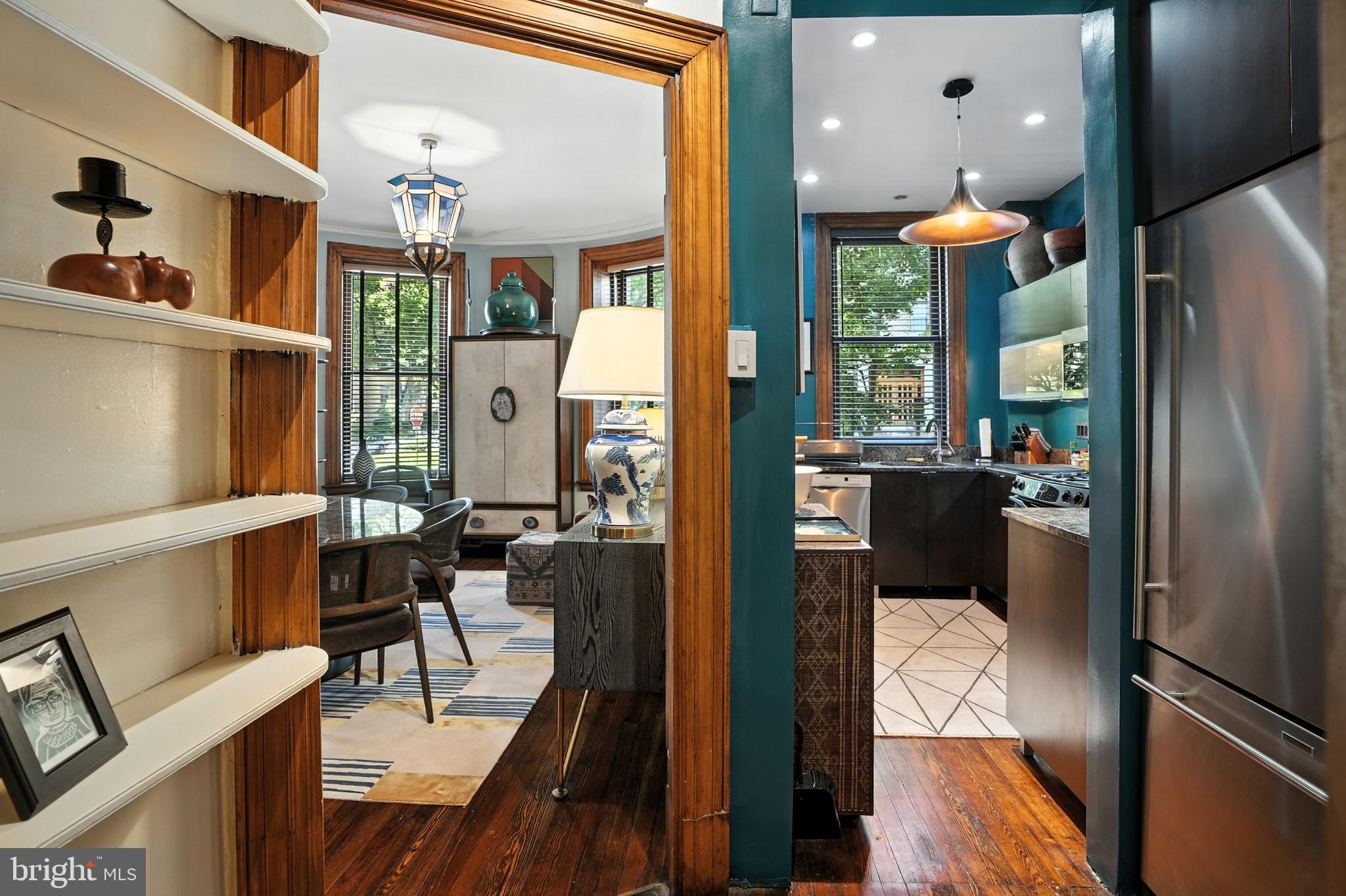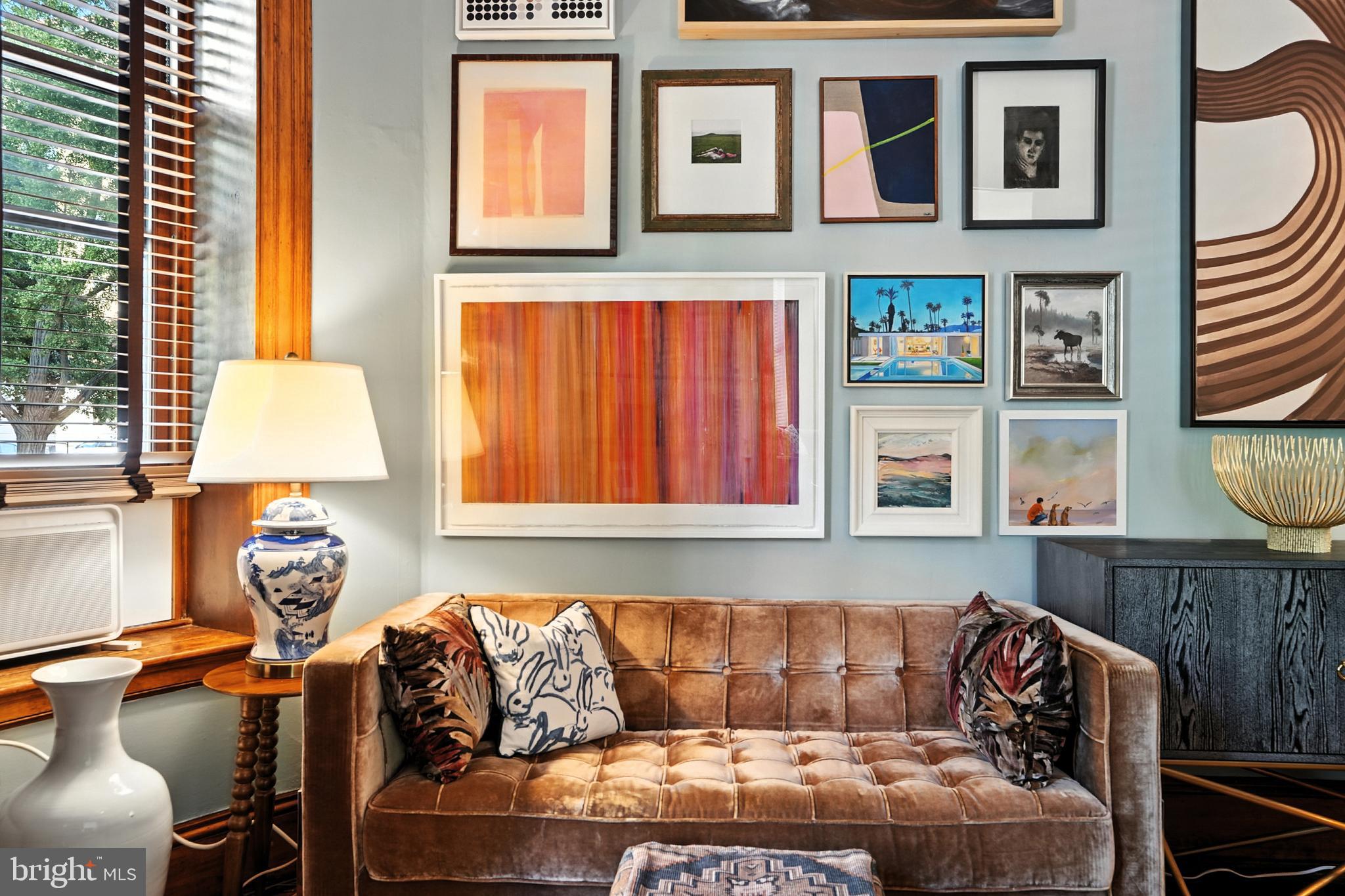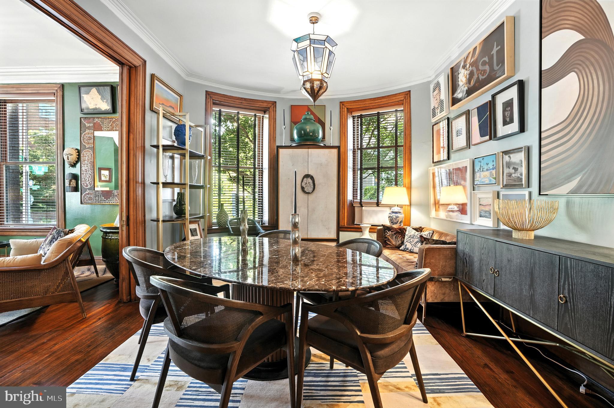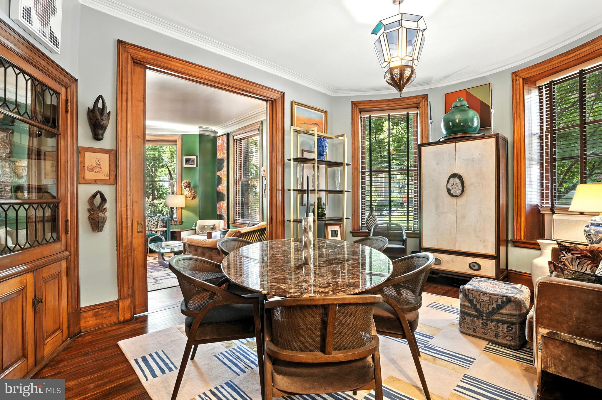 This spacious corner one-bedroom residence offers beautiful multiple-exposure views overlooking the tree-lined streets of Kalorama and 1,000sqft of interior space reminiscent of a chic Parisian flat. The home retains many original details, including 10-foot ceilings, crown molding, gleaming hardwood floors, chestnut doors, and a classic fireplace. Separate living and dining rooms enhance the elegant layout, seamlessly paired with modern upgrades such as a high-end kitchen and an elegant marble bathroom. Additional features include an in-unit washer/dryer and generous closet space.