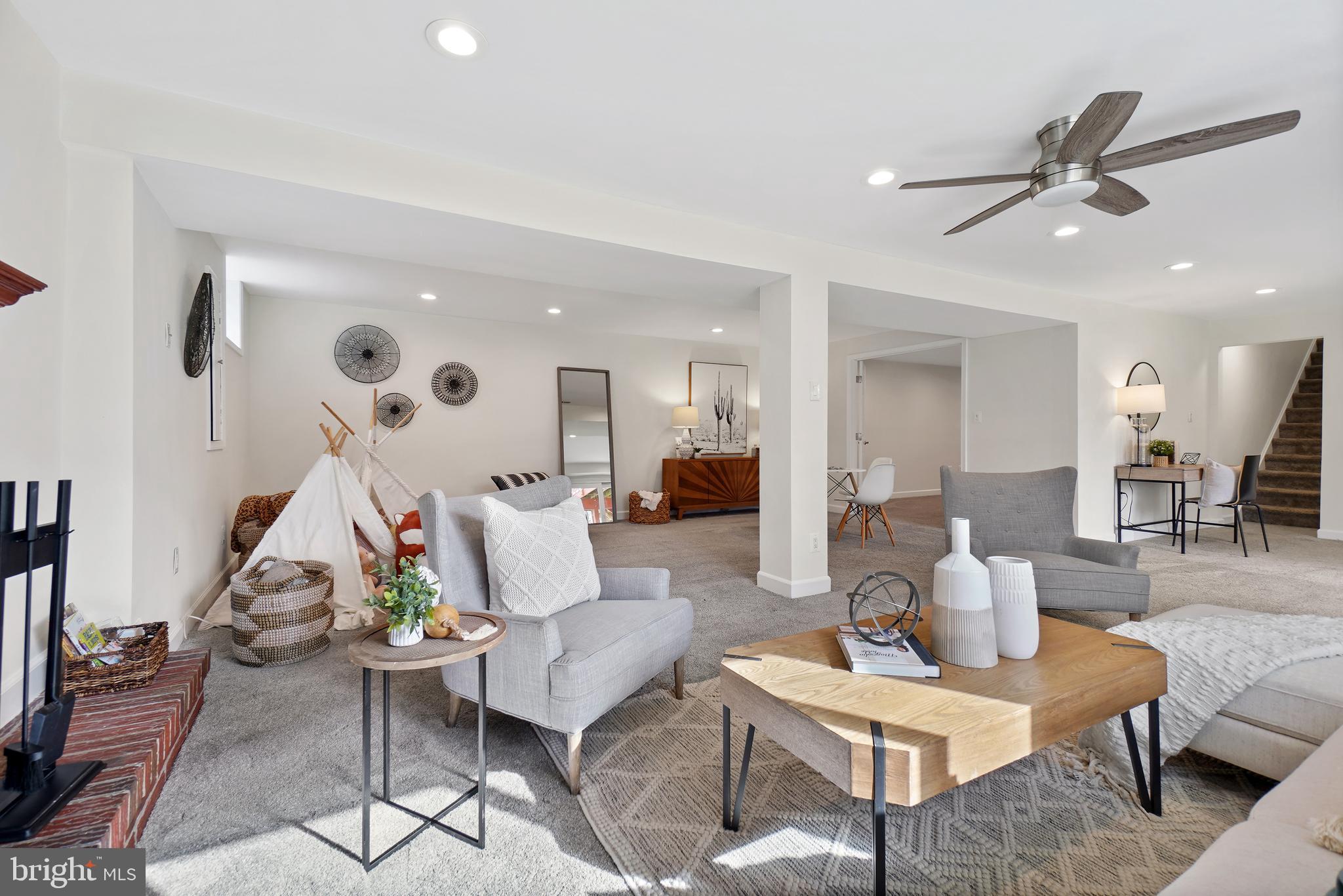 On the first floor, you'll find two spacious guest rooms, a full hall bathroom, and the primary suite with its own luxurious ensuite bathroom. The walk-out lower level presents a sprawling additional living room/recreation space, a full bathroom, a fourth bedroom, and a sizable laundry room.