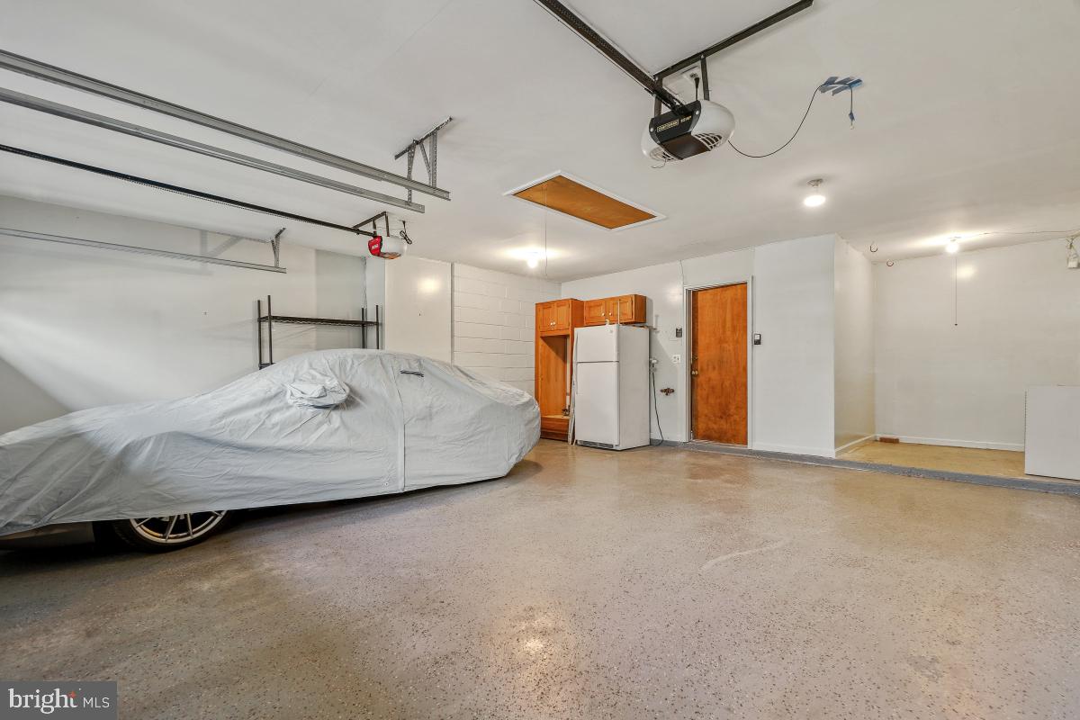 The exterior is equally impressive, with a charming brick front, low/no maintenance siding on the other three sides, a front stone walkway, an enlarged and relaid asphalt driveway, and in-ground front yard landscape lighting that beautifully illuminates the home in the evenings The rear of the property is highlighted by a redone deck overlooking the lushly-planted private backyard,. All windows and the garage door have been replaced for energy efficiency and a fresh look. New 14-inch high R-value attic insulation was installed in 2025, ensuring comfort and lower utility bills. The garage has an indoor hot and cold hose bib, the walls, floor are epoxy-painted and a pull-down ladder that accesses even more storage.